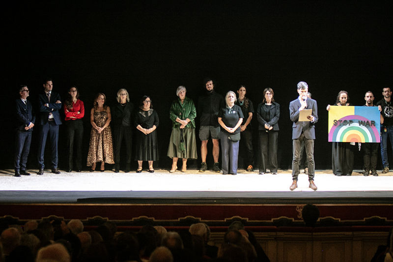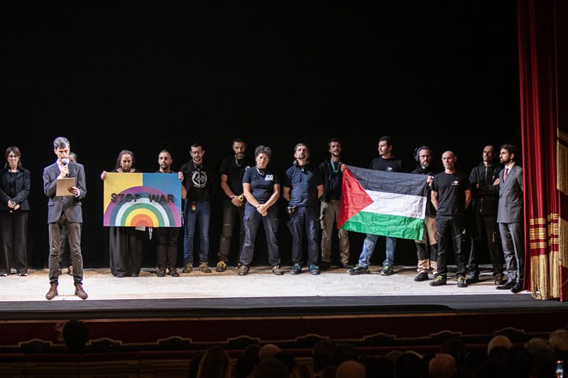 Prima della rappresentazione è stata data lettura di un comunicato di solidarietà al popolo palestinese e a tutti coloro che hanno manifestato nelle piazze italiane.