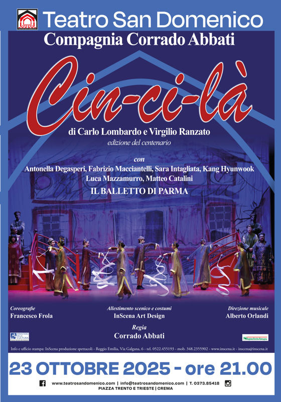 La "Prima" del Teatro San Domenico si svolgerà il 23 ottobre alle ore 21,00. La stagione parte con "Cin-ci-là", l'operetta di Carlo Lombardo e Virgilio Ranzato, a cura della Compagnia Corrado Abbati, definita dal direttore artistico Maurizio Colombi come "una delle più professionali presenti in Italia".