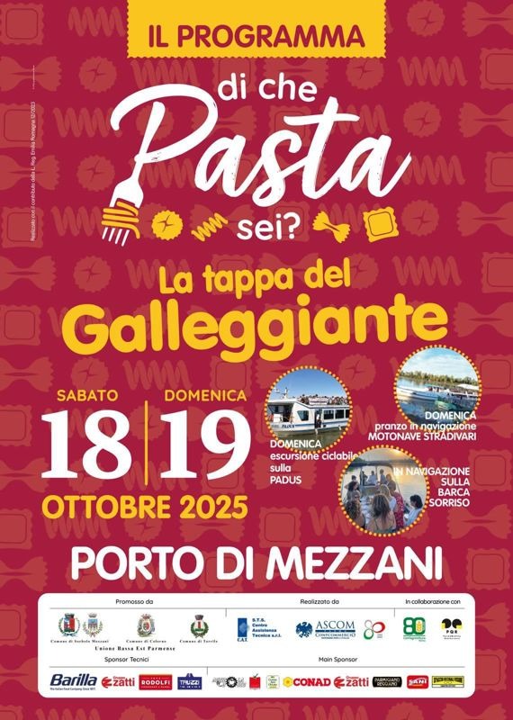 Prosegue il viaggio alla scoperta della tradizione gastronomica locale con la rassegna “Di che Pasta sei?”, rassegna promossa dall’Unione Bassa Est Parmense, con i Comuni di Sorbolo Mezzani, Colorno e Torrile con il contributo della Regione Emilia-Romagna (LR 12 del 2023), e la comunicazione affidata ad Ascom Parma, giunta alla sua terza e attesa tappa. Dopo Sorbolo e Colorno, il 18 e 19 ottobre nel porto fluviale il testimone passerà al paese di Mezzani (PR) per celebrare l’anolino morbino, piatto simbolo di questo territorio lungo il Grande Fiume.