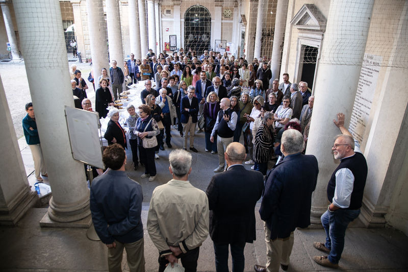Accanto all’artista erano presenti il figlio Sebastiano Mascarini, curatore della mostra e autore del catalogo, l’Assessore alla Cultura Rodolfo Bona e lo storico dell’arte Marco Tanzi, in un confronto vivo che ha restituito alla mostra la sua dimensione più autentica: quella di un pensiero condiviso. A sottolineare il valore di questa apertura al contemporaneo, le parole dello stesso Assessore Bona: «l’esperienza dell’arte contemporanea rappresenta oggi un valore fondamentale per la crescita della comunità… capace di creare nuove connessioni tra il patrimonio e il presente, in una dimensione aperta al libero giudizio e alla partecipazione attiva dello spettatore».