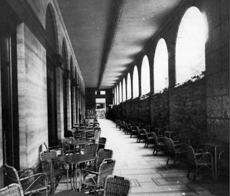 Sulla destra, sotto un porticato, una porticina aveva dipinti a lato due cerchi concentrici con una grande erre al centro ad indicare che da quel passag- gio si accedeva al rifugio antiaereo.