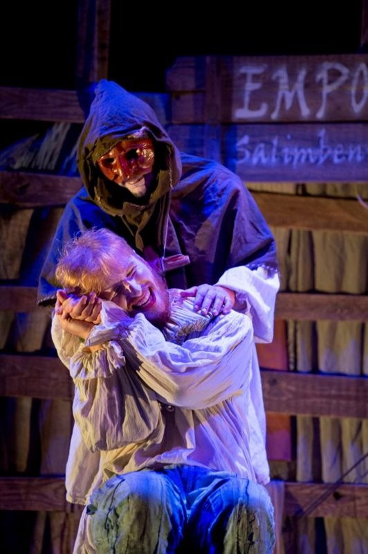 Eppoi questo teatro nel teatro è elemento importante come strumento per raccontare la triste vicenda dei due amanti diventati tali per antonomasia. I due squattrinati saltimbanchi Giulio Paquati e Girolamo Salibeni ricevono l’invito a rappresentare, davanti al Doge veneziano e a Enrico III di Valois, il testo shakespeariano. Trovano anche una donna a cui far recitare, ovviamente, la parte femminile di Giulietta: Veronica Franco, un’honorata cortigiana. Composto il traballante cast ecco che i tre si mettono all’opera sul copione e qui arriva una valanga di gag. Michelle Zoppello, Michele Mori ed Eleonora Marchiori sono bravissimi nel dare spessore ai personaggi. Nel saper riproporre quella meravigliosa arte dell’improvvisazione, trascinando il pubblico e coinvolgendo nella loro pazza di idea di riproporre, in questa storia ‘venexiana’, il capolavoro di Shakespeare. Tutti e tre dotati di grande padronanza della recitazione. Di abilità profonda nel gestire lessici ed espressività così diverse ma così altamente spettacolari.