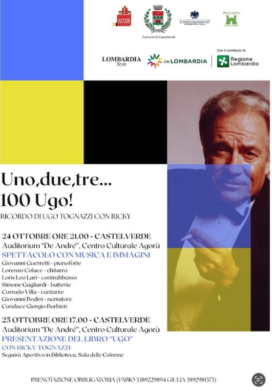 Un doppio appuntamento per celebrare uno dei volti più amati del cinema italiano. Venerdì 24 ottobre alle ore 21.00 e sabato 25 ottobre alle ore 17.00, Castelverde omaggia Ugo Tognazzi con due eventi speciali all’Auditorium "De André" del Centro Culturale Agorà.