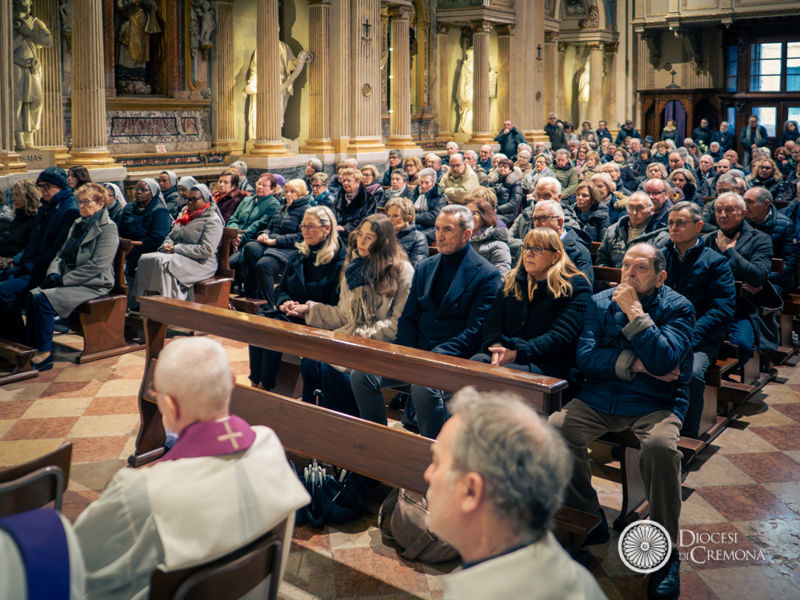 Nella chiesa gremita, i familiari e i confratelli sacerdoti con i canonici del Capitolo della Cattedrale e i sacerdoti che hanno condiviso con lui il ministero, tanti dei suoi ex parrocchiani e una folta rappresentanza del Casato Soldi, l’istituzione benefica fondata dal fratello, Fiorino Soldi (direttore del quotidiano La Provincia di Cremona dal 1961 al 1968). Accanto a monsignor Napolioni anche i vescovi Lafranconi e Scampa e i vicari episcopali. Una assemblea «colma di affetto, gratitudine e serenità – ha sottolineato il vescovo all’inizio dell’omelia –. Perché monsignore … don Giuseppe, come siamo tutti portati più volentieri a chiamarlo, ci ha trasmesso sempre questa serenità, questa gioia della fede».