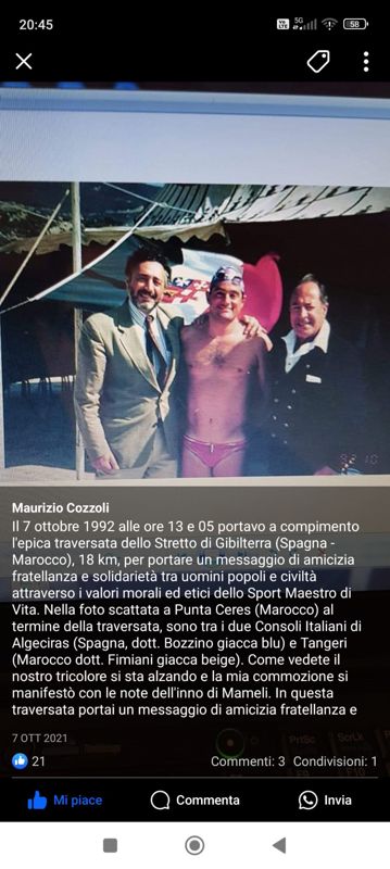 "Per quanto riguarda lo Stretto di Gibilterra", spiega Elisa entrando nei dettagli, "quella traversata portò con sé un messaggio di pace e fratellanza tra l'Europa e l'Africa. Lui la definiva una foto storica perché fu il primo italiano ad aver compiuto quell'attraversata in solitaria. Distingueva infatti le maratone di lunga distanza, come quella di New York, che vedevano gruppi di atleti da tutto il mondo, dalle traversate in solitaria come quella di Gibilterra. Queste ultime rappresentavano per lui qualcosa di più personale e profondo."