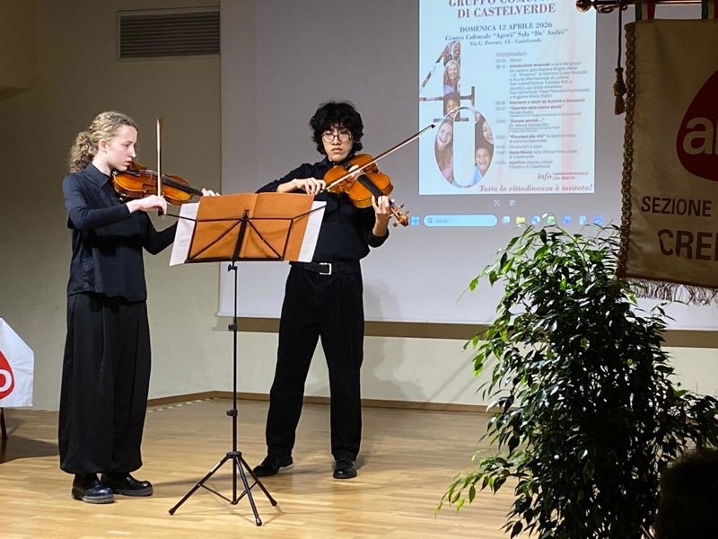 Di grande impatto anche l’esecuzione del duo violino e viola, composto da Pàvel Plancarte Huamantalla e Angeline Kheira Boiron, nell’Allegro scherzando di Franz Joseph Haydn. L’interpretazione ha saputo valorizzare il carattere vivace e giocoso del brano, mettendo in luce un dialogo brillante tra i due strumenti, sostenuto da una notevole espressività. Il pubblico ha dimostrato apprezzamento con un ascolto attento e partecipato.