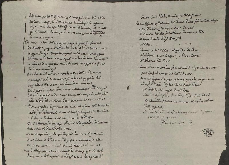 Le mie ricerche, degli anni Novanta, hanno esattamente ricostruito il cast vocale per intero. Così composto: Giuseppe Cicognani di Cesena, Salvatore Cassetti di Pisa, Carlo Moschino di Lodi, Maria Masi Giura di Roma, Maria Maddalena Mori della Casa di Mantova, Pietro Muschietti di Milano. E anche l’intero corpo di ballo di quella sera: Domenico Riccardi fu il direttore e il compositore delle musiche. I ballerini: Vicenzo Lorenzi detto Bocchino, Giacomo Gucci, Gaetano Cipriani, Francesco Novelli, Giacomo Bettini, Teresa Sermet, Giuseppa Ferrari, Regina Cabalata, Paolina Sermet, Teresa Cortenova, Rosa Ganali, oltre lo stesso Ricciardi.
