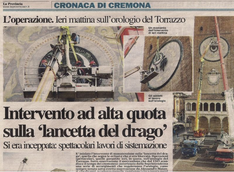 Ricorre quest’anno il decimo anniversario dell’intervento manutentivo all’Orologio Astronomico del Torrazzo di Cremona. Lavoro complesso e non privo di rischi che si è interamente svolto con maestranze cremonesi.