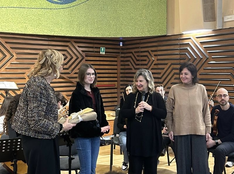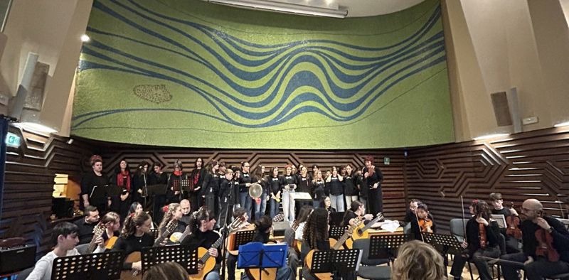 Non solo formalità, però, ma anche festa! Per l’occasione, infatti, si sono esibiti gli studenti del corso musicale, dediti allo studio di vari strumenti, quali chitarra, tromba, piano, clarinetto e violino. Inoltre, in continuità con il cammino di ricerca di sempre nuove e stimolanti sinergie, il laboratorio di coro ha stabilito una bella "collaborazione musicale" e si è esibito con il coro INFINITY, diretto dalla solista Elena Ravelli. Dunque quello del 15 Dicembre è davvero stato un momento molto significativo, segno tangibile di una rete di collaborazioni tra il laboratorio extracurricolare di coro, i docenti dell’ordinamento musicale e un’eccellenza del territorio.