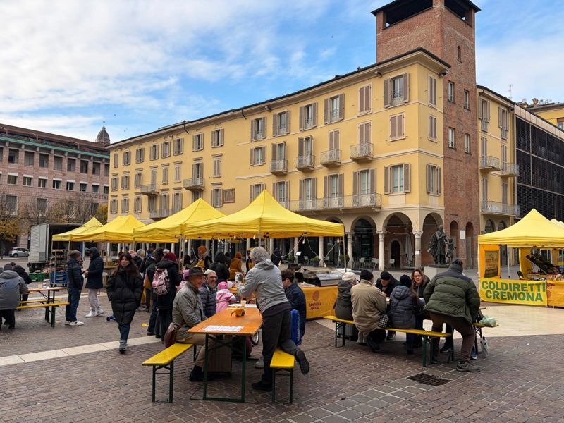 Campagna Amica oggi in piazza Stradivari a Cremona, grande partecipazione