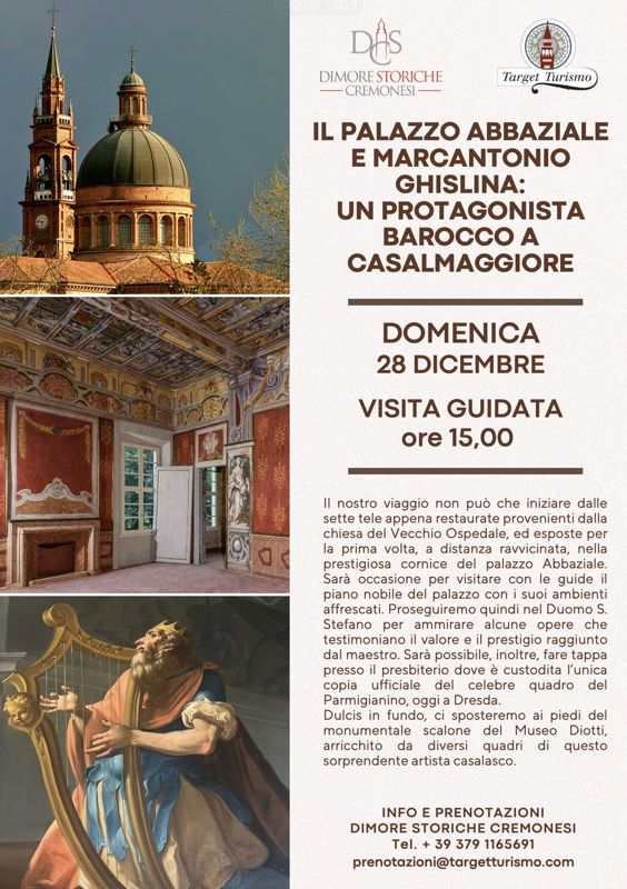 Un viaggio nella storia e nell'arte che avrà come filo conduttore principale proprio l'artista casalese e la sua pittura attraverso importanti opere da secoli conservate; il visitatore verrà condotto nel monumentale duomo di S. Stefano, con l'apertura straordinaria del presbiterio e del coro attraverso le sacrestie e la cripta, fino ad arrivare al sontuoso piano nobile affrescato del palazzo abbaziale, cuore pulsante del complesso, che racconta l'importante storia religiosa di Casalmaggiore nei secoli e dove da pochi giorni è esposto l'importante ciclo di dipinti di Marcantonio Ghislina della chiesa del Vecchio Ospedale recentemente restaurato. Occasione quindi davvero unica per ammirare da vicino la bellezza dei dipinti dopo diverso tempo e soprattutto nel ritrovato splendore.