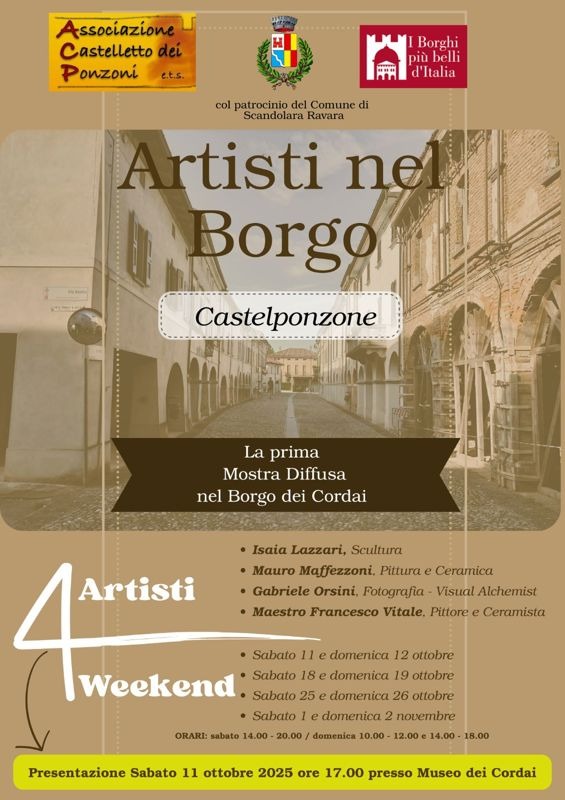 Castelponzone, il Borgo dei Cordai torna a vivere grazie all'arte: da sabato 11 ottobre a domenica 2 novembre va in scena "Artisti nel Borgo", la mostra diffusa che animerà le vie del paese