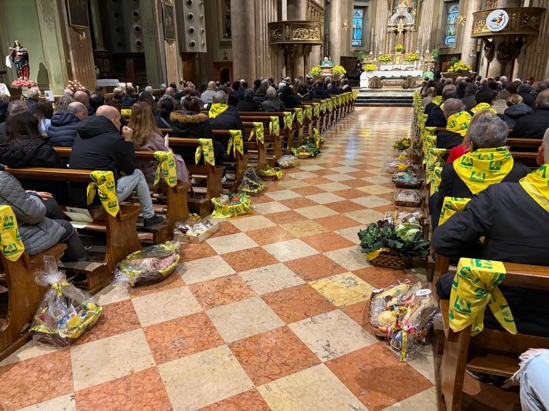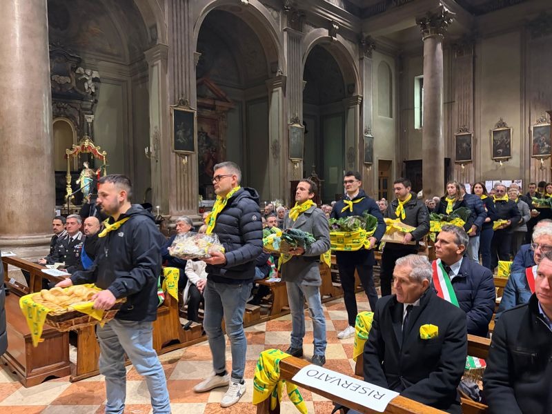 Un momento di grande emozione è stato, secondo tradizione, il lungo corteo di giovani imprenditrici e imprenditori agricoli che hanno portato i doni della terra all’altare, animando l’offertorio. E’ seguita la benedizione dei trattori e dei mezzi agricoli, raccolti in parata, in una cornice di bandiere gialle.