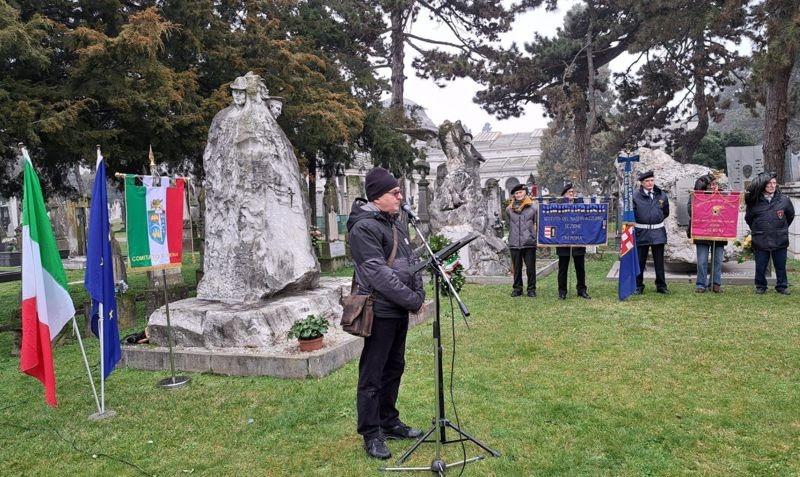 Cerimonia commemorativa al Civico Cimitero in occasione del Giorno del Ricordo, la ricorrenza istituita nel 2004 dal Parlamento per conservare e rinnovare la memoria della tragedia degli italiani e di tutte le vittime delle foibe, dell'esodo dalle loro terre degli istriani, fiumani e dalmati nel secondo dopoguerra e della più complessa vicenda del confine orientale.