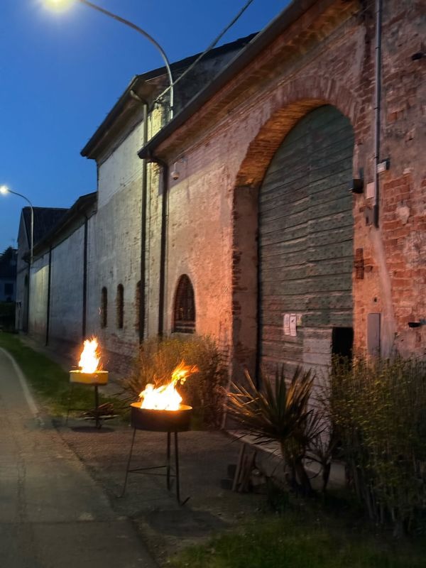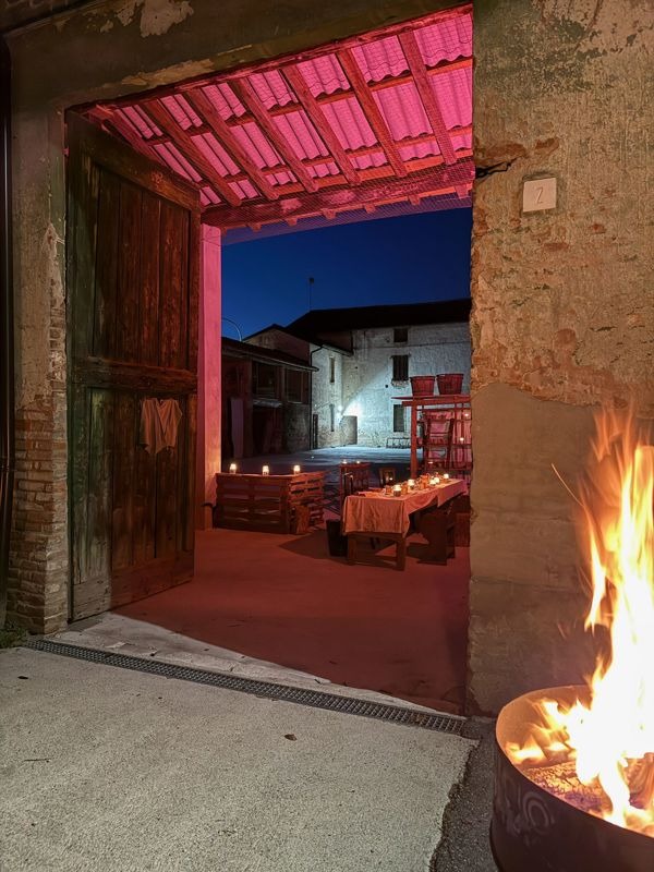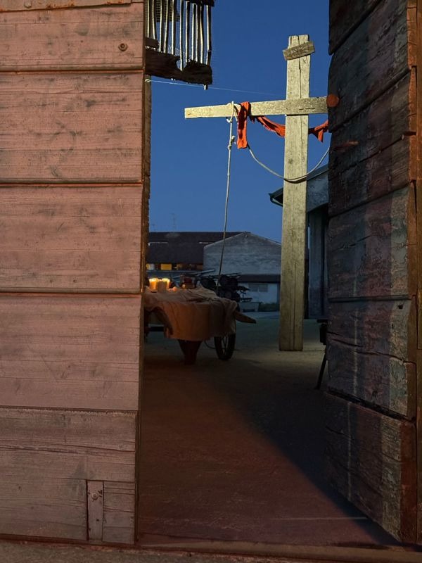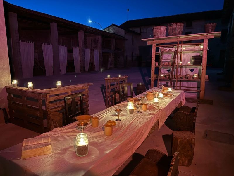 Presso la cascina Corte Grandi infatti alcuni volontari della parrocchia e del paese hanno preparato un allestimento di grande impatto, con braceri e candelabri ad illuminare la scena, composta da un grande tavolo apparecchiato con semplici e povere stoviglie, rivisitazione della mensa dell'ultima cena di Cristo che nel buio del portico, tra le pietre antiche ed illuminato solo dalle candele ha espresso la grande forza narrativa della scena; sotto il voltone della cascina invece è stata allestita la scena della passione e della cricefissione, con la grande croce e il sudario, il tutto sempre affidato alla luce calda e soffusa dei ceri e dei braceri.