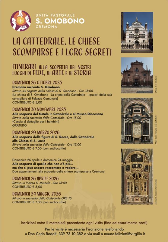 Prosegue a Cremona l’iniziativa dell’Unità Pastorale S. Omobono con il ciclo “La Cattedrale, le chiese scomparse e i loro segreti – Itinerari alla scoperta dei nostri luoghi di fede, di arte e di storia”.