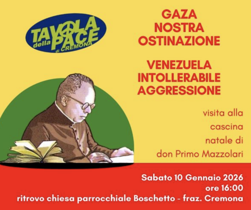“Gaza nostra ostinazione” è il titolo scelto per il 2026, riprendendo la serie di iniziative già svolte a livello territoriale e a partire dall’iniziativa del 30 agosto scorso a Bozzolo. Il pomeriggio sarà l’occasione per condannare ogni tipo di aggressione e ogni forma di neocolonialismo, ribadendo l’importanza del diritto internazionale e dei diritti umani universali per la pace e per la soluzione politica e non militare dei conflitti. Oltre alla situazione di Gaza il pensiero andrà a quanto sta accadendo in Venezuela.