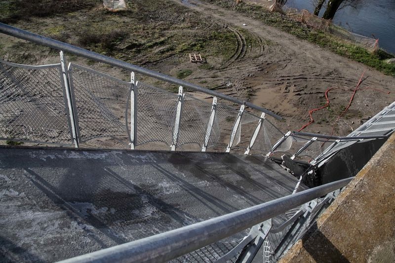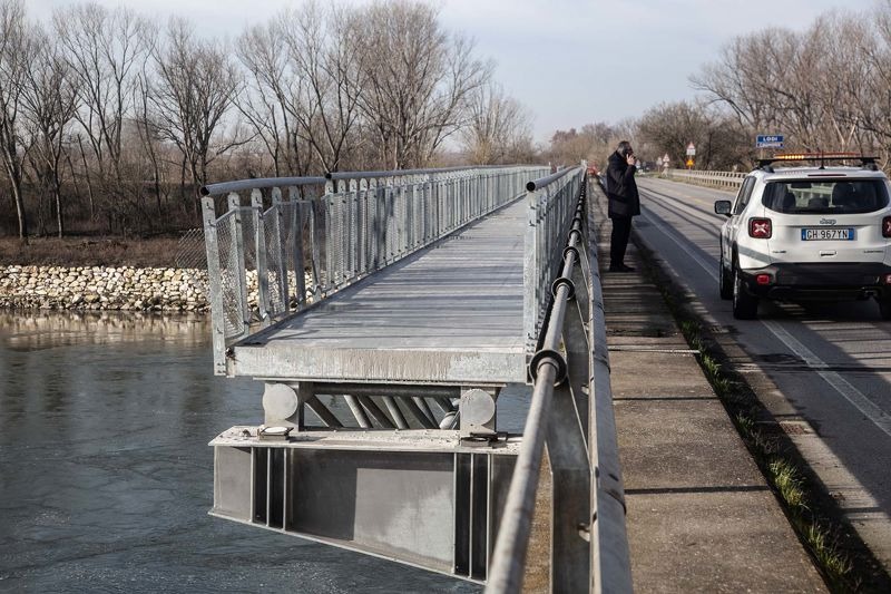 Crollata l'altra parte di passerella della ciclopedonale Vento, nel tratto cremonese. Inchiesta della Procura di Lodi. Tutta l'area sotto sequestro