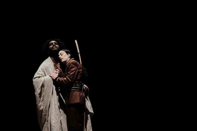 L’operazione gli riesce alla perfezione con un Jared McNeill nei panni di Edipo. Coinvolgente, in certi momenti perfino straziante in un ruolo, quello di Edipo, che è puro dramma dall’inizio alla fine. Ma non c'è solo la recitazione e l’interpretazione che fa bello questo spettacolo. E’ ad esempio la scelta della rappresentazione e della materializzazione del CORO, con tutte le implicazioni che esso aveva all’interno della morfologia della tragedia. Lo rende austero. Lo accompagna e a volte lo plasma su monodie che ricordano o l’antico liturgico bizantino o il più comune canto liturgico medievale. Scegliendo, in alcuni casi, di dipingere il melos con richiami etnici di quella cultura. Non mancano, nella creazione di Bruno de Franceschi, fughe leggere, ma intense in contesti polifonici semplificati di grande e ovvia suggestione.