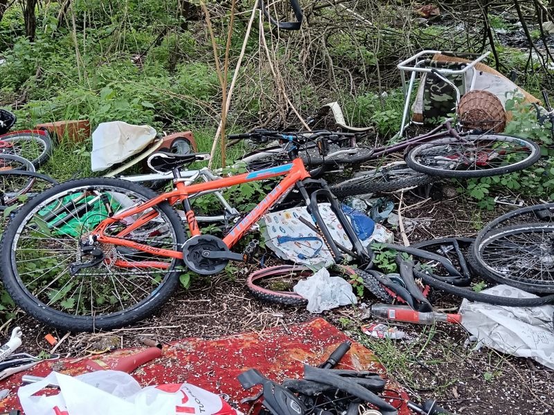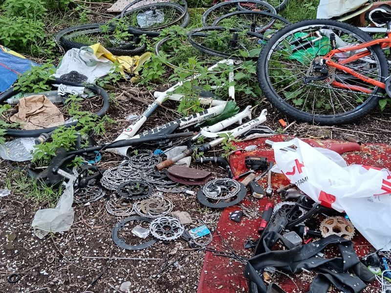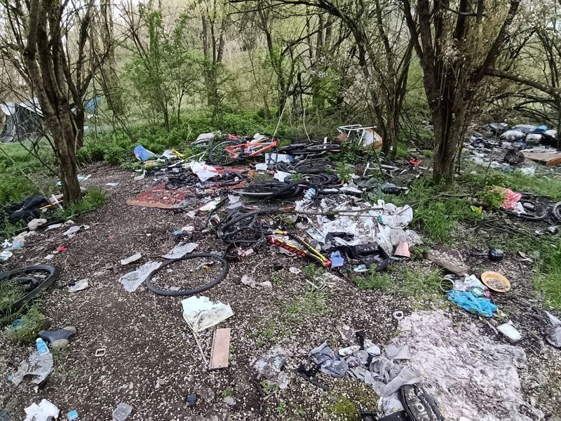 Di certo, la situazione in quella zona è del tutto fuori controllo, con una montagna di rifiuti di ogni genere ancora una volta sparsa tra alberi e verde, con la presenza di una sorta di accampamento e un'attività quantomeno sospetta legata alla presenza di tutte quelle bici smontate. Una situazione che meriterebbe certamente interventi più approfonditi.