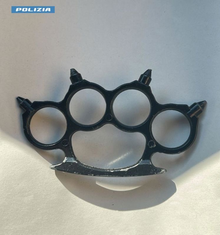 A seguito di un controllo sull'autovettura veniva trovato anche un tirapugni che venivasequestrato dagli agenti delle Volanti.