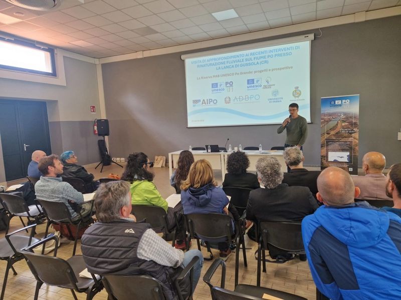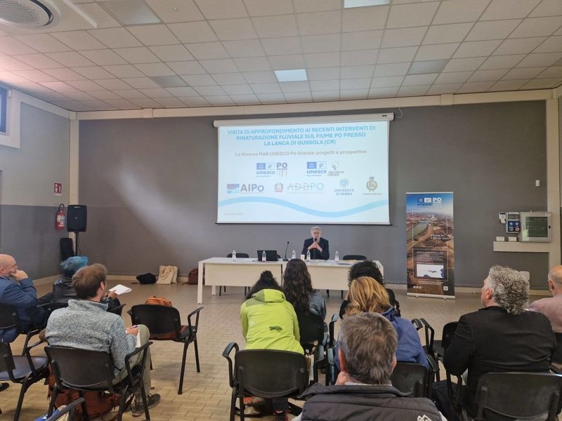 Tra gli appuntamenti e le iniziative della Giornata Mondiale della Terra, celebrata mercoledì, di particolare interesse l’incontro tra la Riserva MAB UNESCO Po Grande e la Riserva MAB UNESCO delle Alpi Ledrensi & Judicaria dedicato all'approfondimento degli interventi di rinaturazione fluviale sul fiume Po presso la lanca di Gussola. Dopo il benvenuto del sindaco di Gussola Stefano Belli Franzini e l'introduzione del Segretario Generale dell'Autorità di Bacino Distrettuale del fiume Po (ADBPO) Alessandro Delpiano, il caso studio della lanca di Gussola è stato presentato sotto il profilo degli strumenti di pianificazione distrettuale del fiume Po, con gli interventi di Paola Gallani e Tommaso Simonelli, funzionari di ADBPO, dal punto di vista degli interventi di abbassamento del pennello e del più ampio contesto del PNRR Rinaturazione del fiume Po con il Direttore dell'Agenzia Interregionale per il fiume Po (AIPo) Gianluca Zanichelli e Marco Gardella, funzionario di AIPo, per poi passare all'analisi degli effetti ecologici e della riduzione di gas serra sulla lanca di retro-pennello di Gussola a seguito dell'abbassamento del pennello di navigazione così come il progetto europeo Horizon Rewet presentati da Unipr, rispettivamente da Rossano Bolpagni e Bianca Maria Lecchini; infine la presentazione degli interventi e dei progetti su Isola Maria Luigia e la lanca di Gussola grazie all'intervento di Gianluca Vicini, consulente del Consorzio Forestale Padano. La visione complessiva fornita dai diversi relatori ha consentito di presentare il caso studio di Gussola come esempio emblematico di rinaturazione e studio fluviale. L'utile scambio ha anche visto la presentazione della Riserva MAB UNESCO Alpi Ledrensi & Judicaria, del parco fluviale della Sarca e relativi progetti in corso fornendo utili spunti di confronto e discussione. Da ricordare che solo pochi giorni prima Cremona è stato invece il terzo capoluogo lombardo ad aderire al ClimactPact4Po, dopo Monza e Pavia. Al termine della pulizia delle sponde organizzata da PoSalvaMare, il sindaco Leonardo Virgilio ha firmato il patto per l'adattamento climatico promosso dal progetto europeo LIFE CLIMAX PO. Progetto che lavora su una domanda precisa: come si gestisce l'acqua del distretto del Po in un clima che cambia? Il progetto – 9 anni, 25 partner, coordinato dall'Autorità di Bacino Distrettuale del Fiume Po – punta a costruire una governance multilivello dell'adattamento climatico, migliorare la sicurezza idrica, produrre conoscenza condivisa sul clima e testare azioni pilota replicabili dentro e fuori il distretto. Con la firma, Cremona si è impegna a: sviluppare piani locali di adattamento climatico; integrare gli obiettivi climatici nella pianificazione urbanistica; collaborare con privati, ONG e istituzioni scientifiche; monitorare gli indicatori climatici e valutare l'efficacia delle azioni e coinvolgere attivamente la comunità locale.