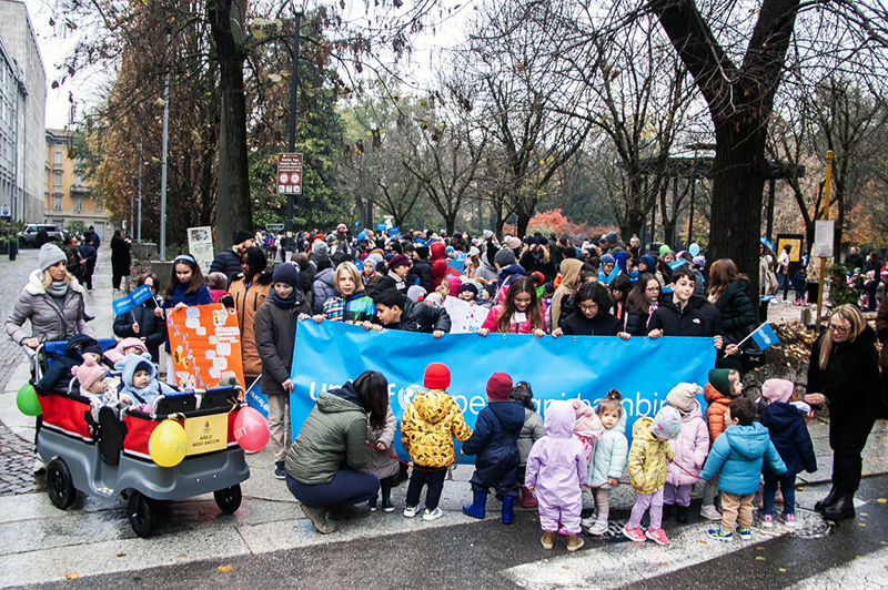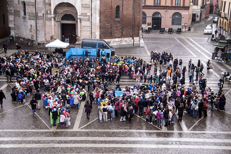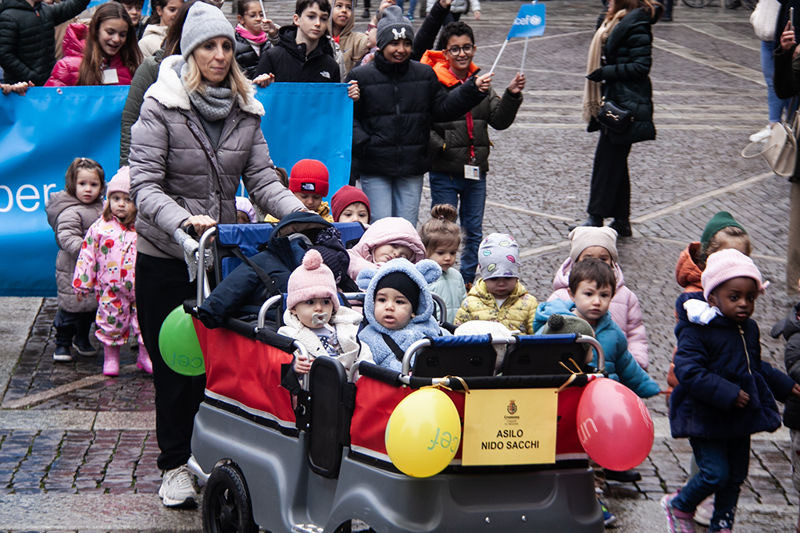 Una marcia chiassosa e colorata che ha visti protagonisti oltre mille bambini delle scuole comunali, dal nido alla scuola primaria, con bandierine, palloncini, striscioni e tanta allegria. Una macchia di colore e buonumore che ha rivitalizzato la grigia e piovosa mattinata cremonese, con la marcia cittadina promossa dal Comitato UNICEF di Cremona e con il patrocinio del Comune in occasione della Giornata Internazionale dei Diritti dell'infanzia e dell'adoloscenza. Il ritrovo alle 10.00 ai giardini di piazza Roma, dove si sono radunate le varie scolaresche e da qui poi il corteo fino in piazza del Comune, dove ad attenderli c'erano anche il sindaco Andrea Virgilio e l'assessore Roberta Mozzi.