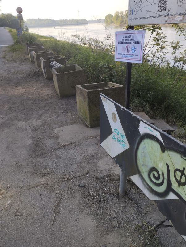 Nel frattempo però i volontari non restano con le mani in tasca, visto che nei giorni scorsi sono tornati di nuovo, per la terza volta in pochi mesi, su Lungo Po Europa per sistemare le fioriere invase da erba e rifiuti e riportare alla luce le rastrelliere per le bici sommerse dai rampicanti. Ma come mai ancora qui a pulire arredi urbani già più volte sistemati dai volontari? "Lo scorso 28/9/2025 un cittadino segnalava a SpazioComune lo stato di sporcizia, degrado e incuria presente nel passeggio del lungo Po all'altezza del ponte, un'area verde di grande passaggio tra la canottieri Baldesio e le altre società canottieri. Il 10/11/2025 la segnalazione veniva inserita nel portale GeIAS dedicato alla manutenzione del verde col numero 73020". E poi? "Qualche cosa non deve aver funzionato e dopo 7 mesi i volontari del gruppo Los Limpiadores de Estrellas hanno deciso di tornare e rimettere in campo alcune operazioni di pulizia e sistemazione del verde in quella zona: ripulite le fioriere, estratte dalla vegetazione e rese fruibili le due rastrelliere per le biciclette, rimosse un po' di erbe infestanti, pulito l'inizio della scaletta che porta al fiume. Certo tantissime cose restano da fare: sistemare e ridipingere segnali stradali e tabellone turistico, finire la manutenzione del verde, sostituire le fioriere deteriorate, portar via cartelli stradali a lato del cestino, aggiungere qualche essenza alle fioriere. Ora speriamo che gli uffici preposti finalmente si attivino. Ci sarebbero anche da rimuovere quintali di legna bloccati dal pilone del ponte".