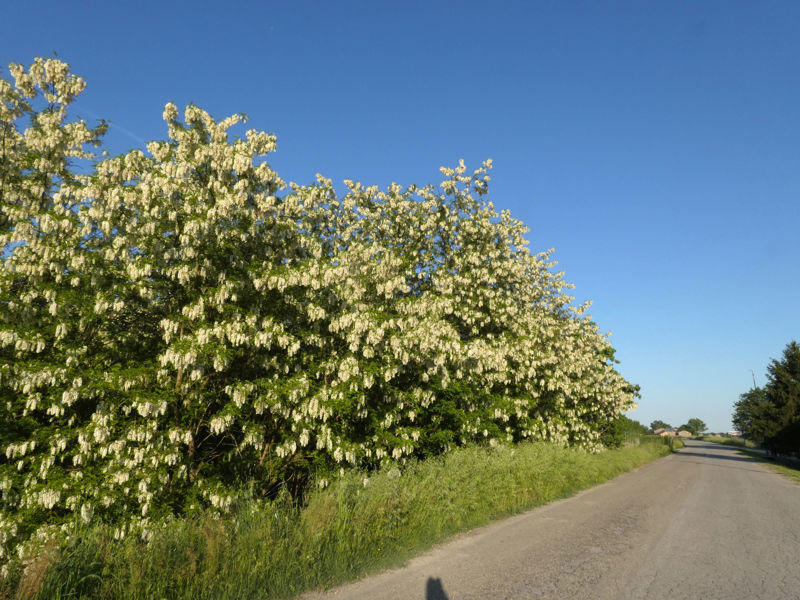 Il bianco e profumato "incantesimo" delle robinie in fiore in campagna e lungo gli argini del Po