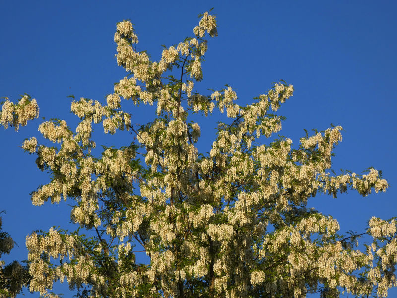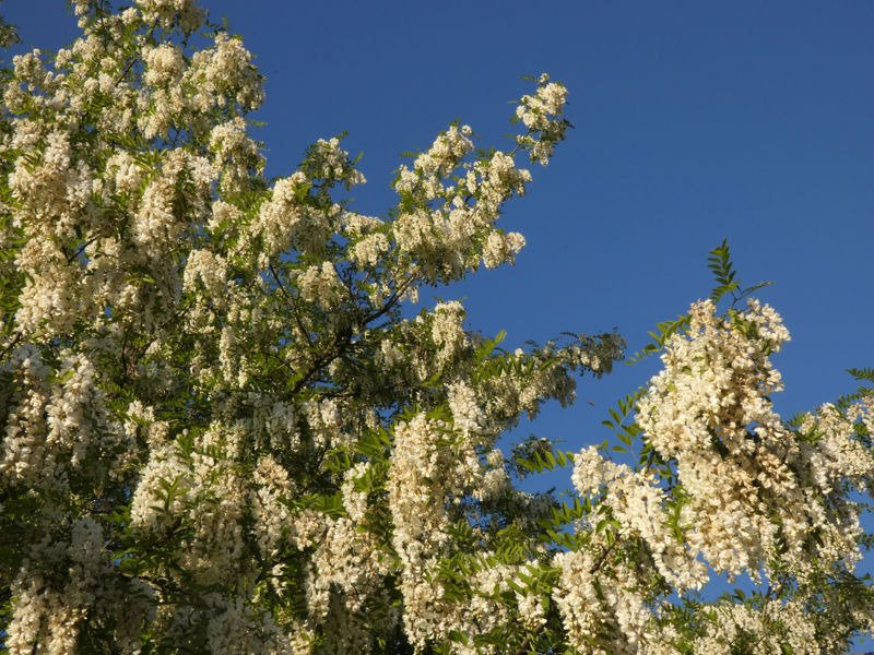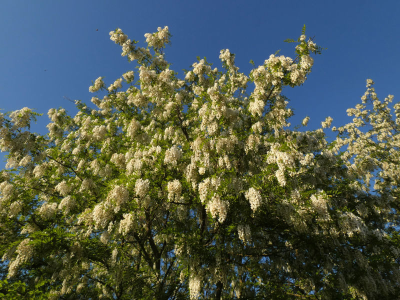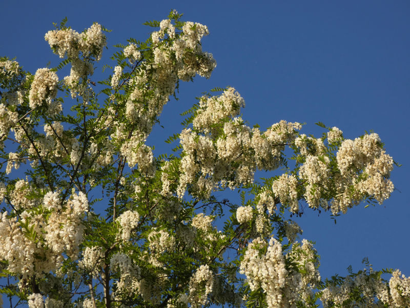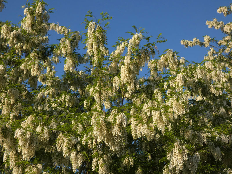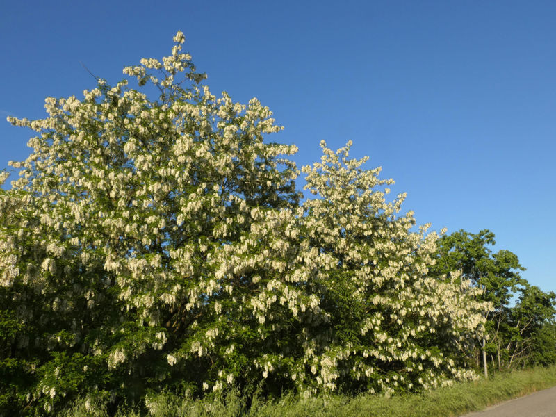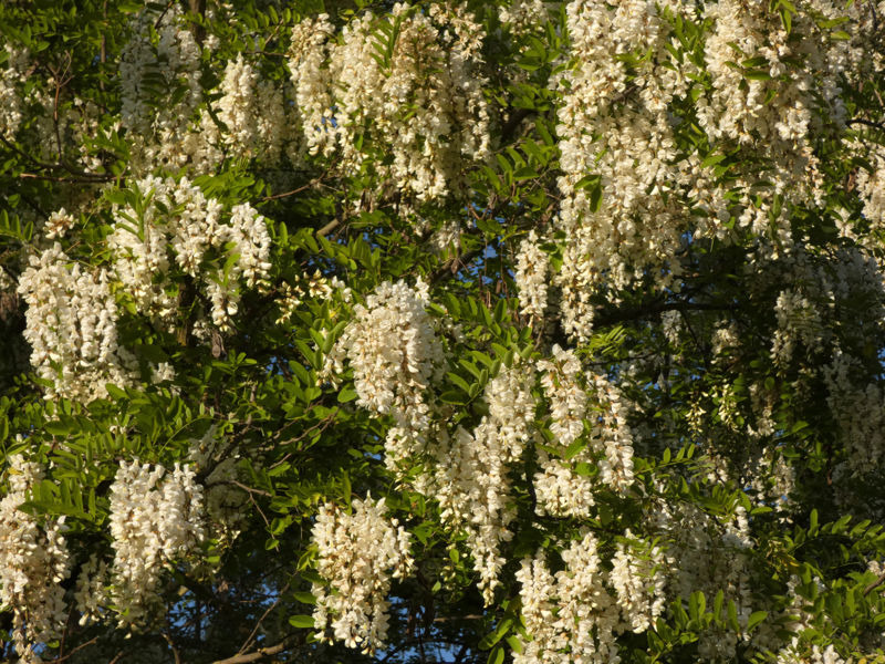 Dopo le “cascate” di glicine (che lentamente ormai se ne stanno andando, in attesa della fioritura del prossimo anno), arriva in terra di Po (e non solo) un nuovo, eccezionale spettacolo. Un bianco e profumato “incantesimo”, che è quello dato dalle Robinie in fiore che, in molte zone, specie lungo le strade sterrate minori, le carraie e gli argini, danno vita ad un paesaggio altrettanto spettacolare, e profumatissimo. Un motivo in più per muoversi, all’aria aperta, in silenzio, a piedi o in bicicletta, lasciando da parte qualsiasi mezzo inquinante per godersi, in pace, la meraviglia, immortalarla, osservarla e, magari, avvicinarsi per coglierne l’eccezionale profumo. La Robinia, Robinia pseudoacacia è detta anche falsa Acacia ma in realtà, va detto, non ha nulla in comune con le Acacie. Si tratta di un albero deciduo originario dell’America del Nord, ma già da tempo ampiamente diffusa in molte zone d’Europa. Il suo portamento può essere sia arboreo che arbustivo, educandolo semplicemente con interventi di potatura. La sua altezza massima raggiunge i 25-30 metri. La chioma densamente ramificata presenta foglie composte, di colore verde brillante, costituite da piccole foglioline ovoidali. Queste di giorno sono aperte, mentre di notte tendono a sovrapporsi l’una sull’altra.
