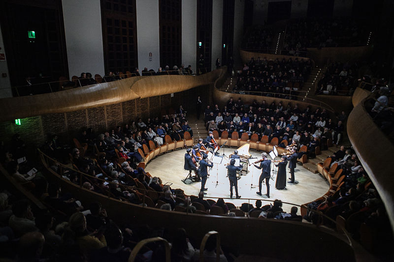 A partire proprio dal concerto bachiano brandeburghese, l’unico dei sei che prevede, in organico, l’utilizzo dei soli archi (il sesto prevede due viole da gamba) e il cembalo come basso continuo. Orchestrazione lineare. Proporzioni sonore, senza sbavature. Niente barocchismi di antica prassi. Solo il tessuto sonoro bachiano in tutta la sua severità e semplicità. Banco di prova per trovare la perfezione dell’eloquio orchestrale tra le sezioni. Bene anche Luigi Accardo al clavicembalo.