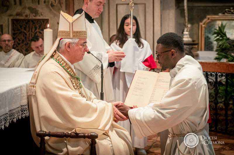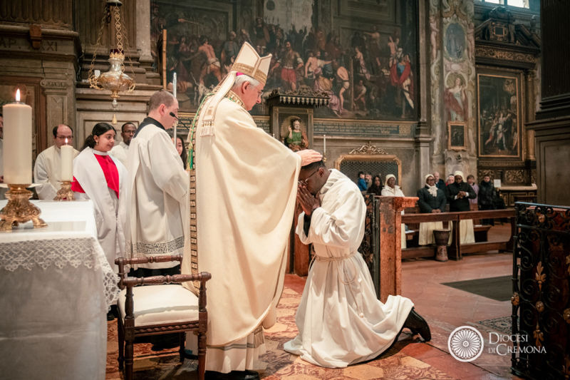 «Dio risveglia ogni giorno il sole e ci dona la speranza della vita in ogni bambino, in ogni briciola di esistenza, negli occhi di ogni ragazzo». È con un forte richiamo all’unità della Chiesa che, nella mattinata di domenica 15 febbraio, nella chiesa di San Pietro al Po, a Cremona, il vescovo Antonio Napolioni ha conferito l’ordinazione diaconale a Patrick Komivi Fangbemi. Lo ha fatto a nome del vescovo Moïse Touho di Atakpamé, diocesi togolese a cui appartiene il giovane seminarista classe 1996, che da un paio d’anni è ospitato nel Seminario di Cremona per il completamento degli studi teologici in vista dell’ordinazione presbiterale.