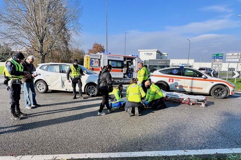 Incidente sulla tangenziale di Cremona: moto e auto si scontrano all’incrocio con via Trebbia, coinvolti una 19enne e un 84enne