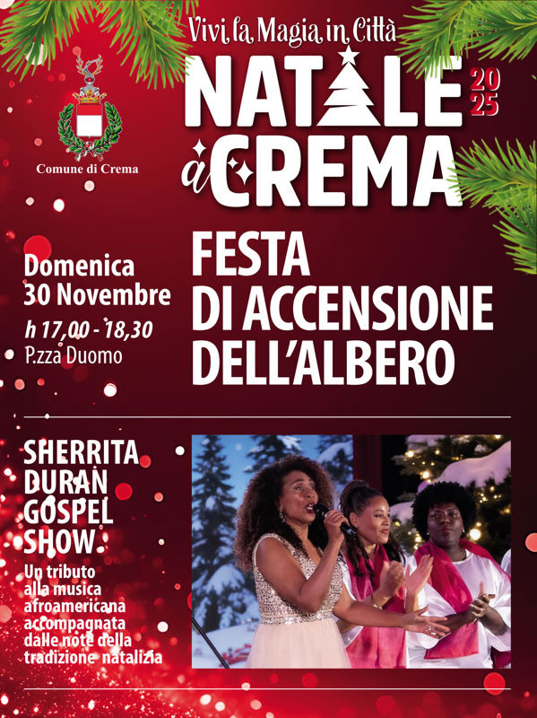 Crema accende il Natale: domenica 30 la cerimonia dell’albero e il Gospel Show di Sherrita Duran