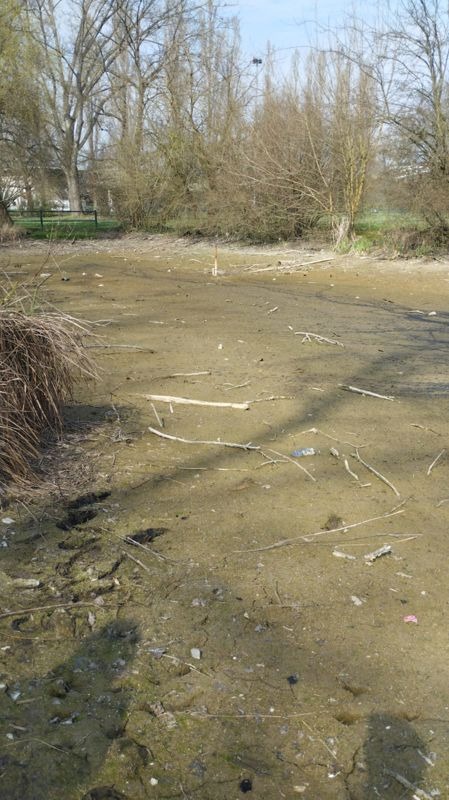 Dove c'era il laghetto, la cui cura è in capo al comune di Cremona, ora è tutto una melma in cui si affonda, tra canne ed erba secca e rifiuti di ogni tipo che emergono; resta solo una piccola pozza fangosa che va restringendosi ora dopo ora e che presto sparirà del tutto, se non verrà alimentata da nuova acqua in grado di salvare pesci e tartarughe.