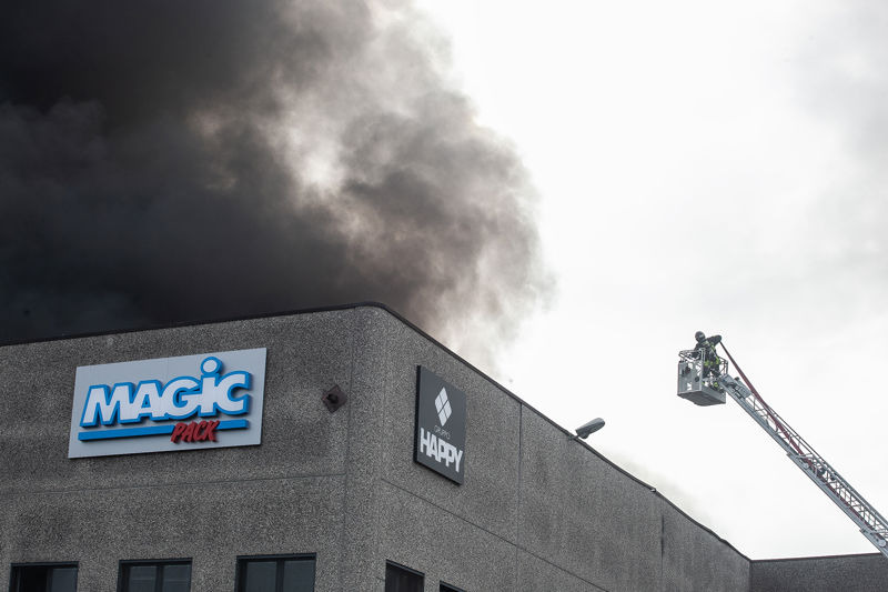 Nel frattempo le immagini che arrivano sono impressionanti e meglio di tante parole descrivono la situazione vissuta stamattina in via del Lavoro. Secondo le prime informazioni, l'incendio si sarebbe sviluppato proprio all'interno del capannone principale di Magic Pack, propagandosi velocemente in tutti i locali produttivi, dove avrebbe trovato terreno fertile nei materiali altamente infiammabili trattati dall'azienda; il personale che era già in servizio a quell'ora è stato evacuato senza problemi e rimandato a casa, mentre le fiamme hanno continuato a divorare il capannone, creando una colonna di fumo nero e denso, alta decine di metri e visibile da diversi chilometri di distanza.