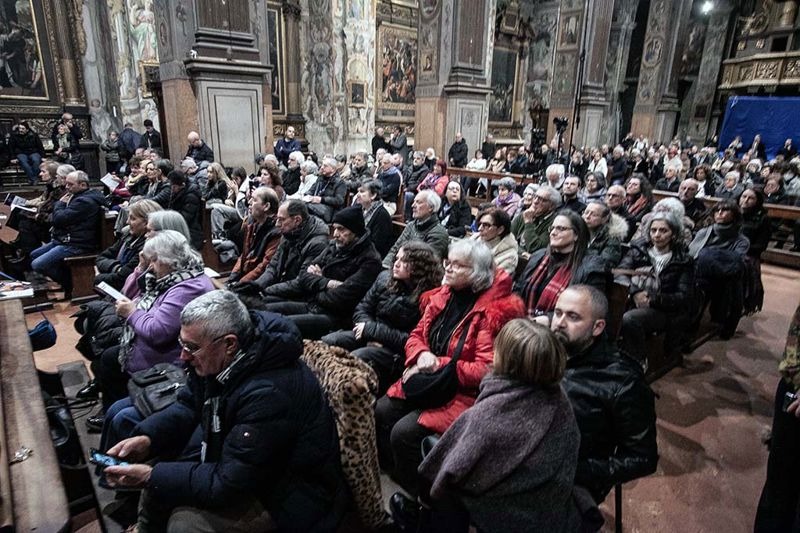 Braga, alla guida della BeMyOrchestra di Cremona e del Coro Lirico Ponchielli-Vertova, ha immerso la Messa da Requiem di Giuseppe Verdi in un’intesa e profonda religiosità. Ha amplificato il canto dei defunti attraverso una tensione altissima, quasi palpabile fisicamente, sotto le volte della chiesa di San Pietro. L’hanno seguito a perfezione, in questo impervio sentiero impervio, i quattro solisti: Kseniia Overko, soprano; Eleonora Filipponi, mezzosoprano; Xinrui Liu, tenore; Mauro Corna, basso. E i centoquaranta musicisti tra orchestrali e coristi.