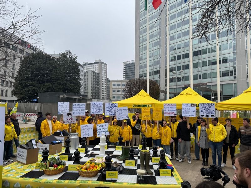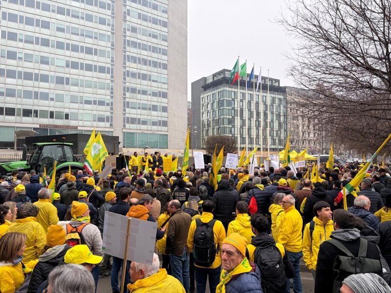 Milano, agricoltori Coldiretti Lombardia in piazza: protesta sotto il Pirellone per SOS campi in scacco