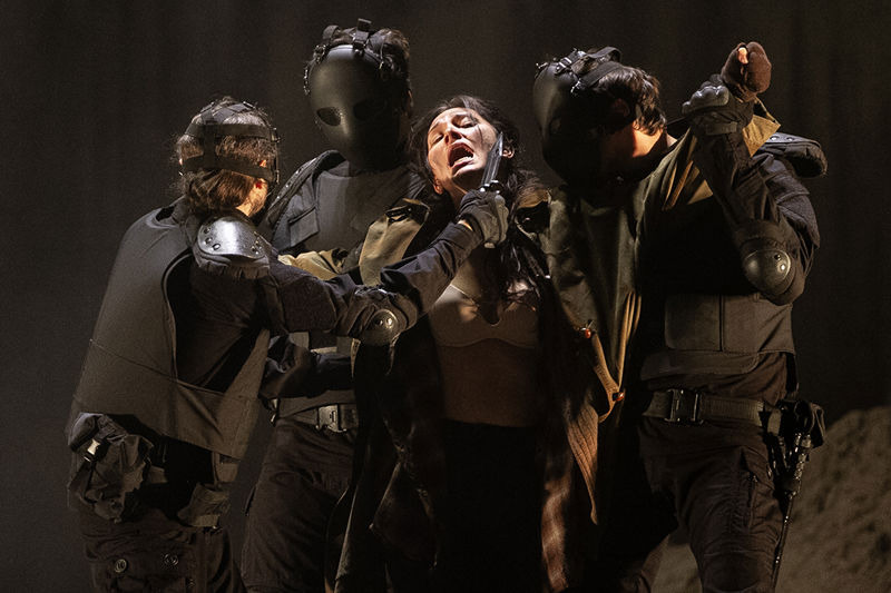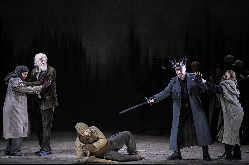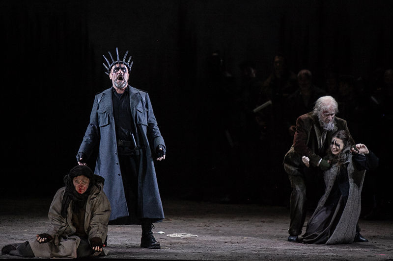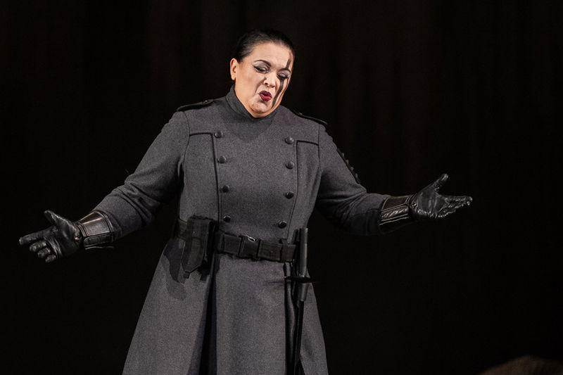 Federico Grazzini, Anna Laura Miszerak, (aiuto), firmano una regia che a volte è sembrata dissociarsi dal contesto musicale. Nessun mutamento di scena. Molti riferimenti contemporanei. Gelidi spazi vuoti. Per lo meno è stata essenziale. Si sono adeguati alla volontà registica, le scene e i costumi di Anna Bonomelli, con l’assistenza di Angelica Forni. Così come le luci di Giuseppe di Iorio coadiuvato da Luca Asioli.