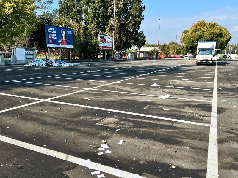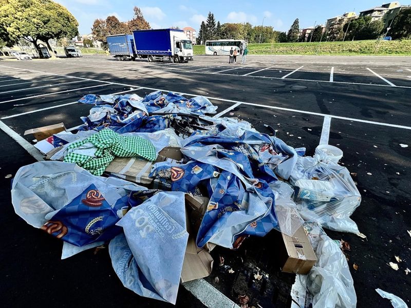 E' finita sabato 11 la kermesse autunnale della Cremunich 2025 Tanta Robba Oktoberfest, che porta a Cremona la festa più rinomata della Baviera, tra birra, hotdog e piatti tipici bavaresi. Eppure oggi, a distanza di 4 giorni, su Piazzale Azzurri d'Italia restano ancora cumuli di rifiuti e di sporcizia: ce lo segnalano alcuni lettori e quindi, verificando sul posto, ecco che ci si trova davanti ad un cumulo di striscioni, cartoni, sacchi dell'immondizia, cavi, tovaglie, bicchieri di plastica e di vetro, secchielli pieni di panini non consumati. Una montagna di spazzatura che occupa più di tre stalli della auto, tanto per rendere l'idea della quantità, un cumulo visibile anche dalla strada, tanto che le segnalazioni non hanno tardato ad arrivare.