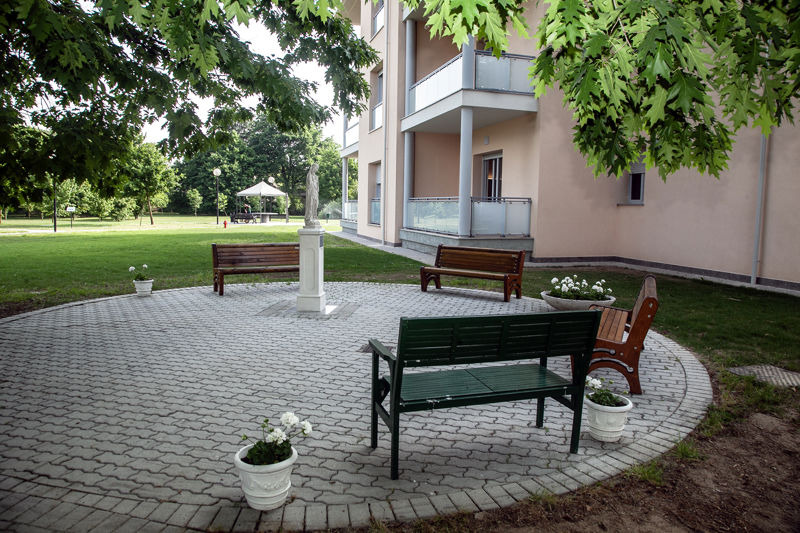 Fiore all'occhiello della struttura è l'ampio parco, un polmone verde che d'estate viene vissuto con grande entusiasmo e grande beneficio dagli ospiti che letteralmente "rinascono" trascorrendo tempo all'aria aperta, tra il verde e gli alberi, pregando davanti alla statua di Cristo Redentore o recitando il rosario sulle panchine davanti all'effigie di Maria.