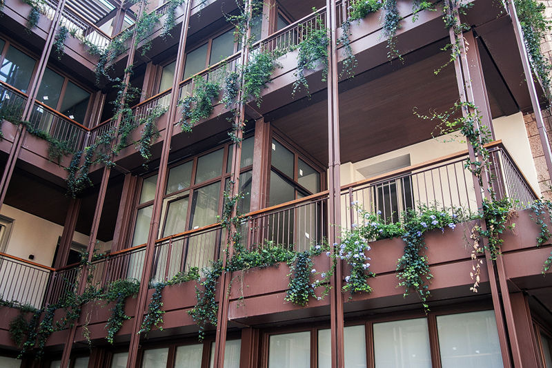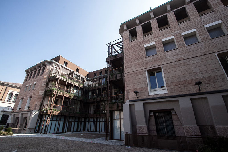 Palazzo Corteverdi, terminati i lavori di piantumazione sulle balconate, ora gli ultimi interventi negli appartamenti: già due terzi quelli venduti. Le esclusive immagini del complesso ristrutturato