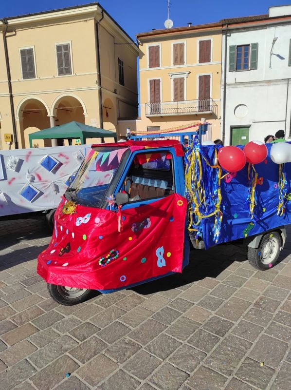 Il ritrovo in piazza XXV Aprile, dove ha preso forma una festosa carovana di Ape Car addobbate per l’occasione. Tra coriandoli, musica e maschere di ogni tipo, il corteo ha attraversato il paese fino a raggiungere l’oratorio, accolto da un rinfresco offerto dalla parrocchia. La festa è dunque continuata a teatro dell'oratorio, dov'è arrivata “Gina”, la panchina gialla, che ha segnato un momento dal forte valore simbolico: la presentazione di “Gina”, la Panchina Gialla contro il bullismo, rigenerata e restituita al paese dall’associazione Olmo.