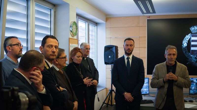 Infine, il comandante della Polizia Locale Luca Iubini, sottolineando come il rinnovamento e il potenziamento della Centrale Operativa sia il risultato di un lavoro di squadra tra i vari Settori e Servizi del Comune, nonché della stretta collaborazione con tutte le altre istituzioni, ha illustrato brevemente come funziona il nuovo videowall che, grazie anche al ripristino di tutto il sistema di videosorveglianza, permette una visione nitida e un controllo efficace di tutti i punti strategici della città.