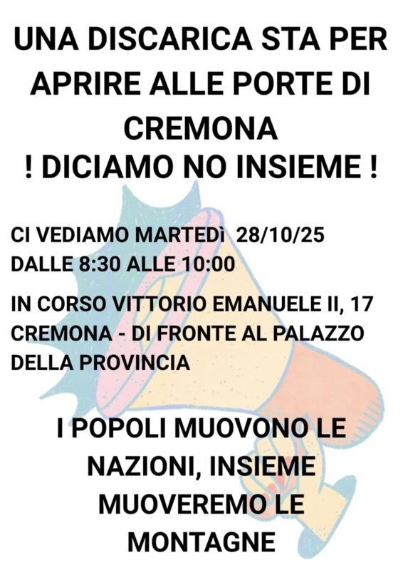 "Abbiamo l'esigenza di far sentire il “NO” fermo e convinto degli abitanti e delle amministrazioni dei comuni di Grumello, Pizzighettone e Acquanegra nei confronti del progetto “discarica di rifiuti non pericolosi” (che potrebbero diventare in futuro anche pericolosi) proposto sul territorio di Grumello Cremonese.
