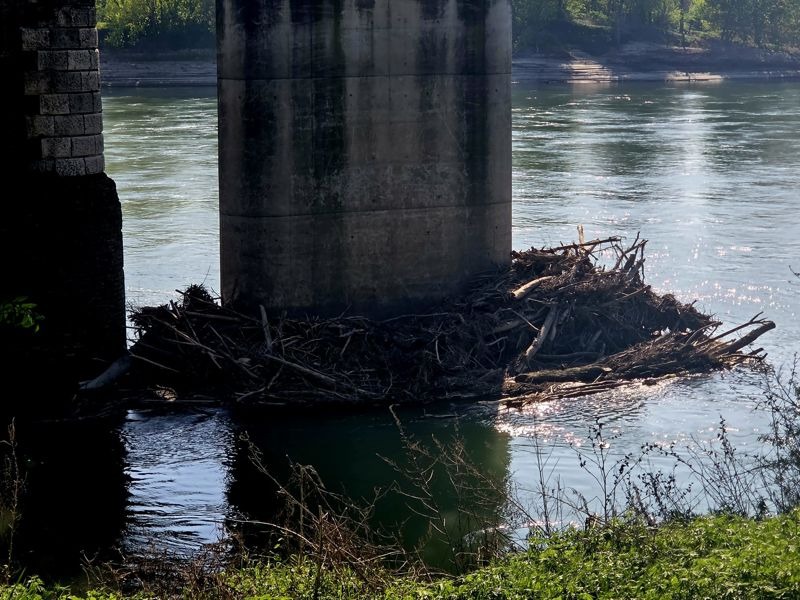 Rami e tronchi impigliati ai piloni del ponte sul Po tra Cremona e Castelvetro. Perché nessuno li rimuove?