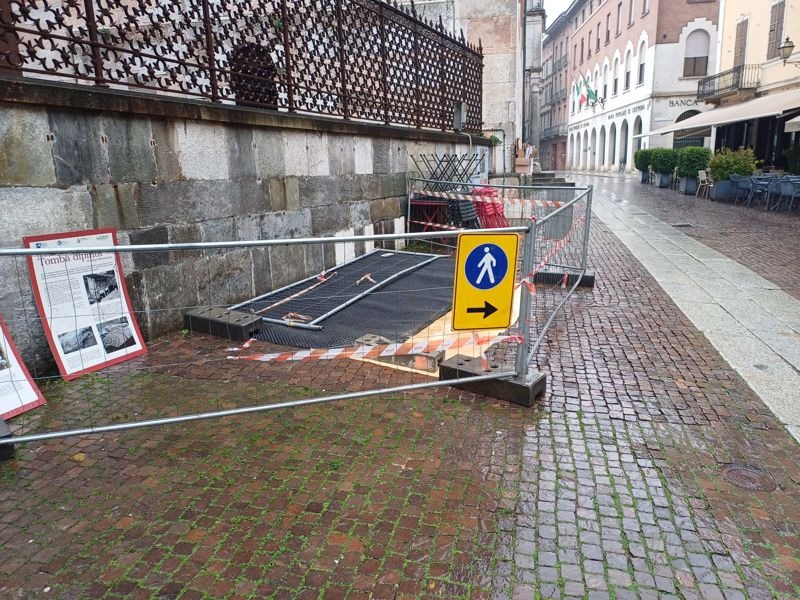 La tomba è lì da mille anni, riscoperta nel febbraio 2020 durante i lavori per portare il teleriscaldamento in Cattedrale e "protetta" con una copertura provvisoria che ne impedisce la vista in attesa della soluzione definitiva (cioè la copertura). Sull'antica tomba dipinta di bianco vicino alla facciata settentrionale della Cattedrale spiccano croci simili a quelle dei Cavalieri Templari, una simile sepoltura mai era stata trovata nella nostra città. "A protezione della tomba è stata posta una copertura volta a garantirne la conservazione e che solo temporaneamente verrà a turbare la bella vista di questo lato della Cattedrale e del Torrazzo".