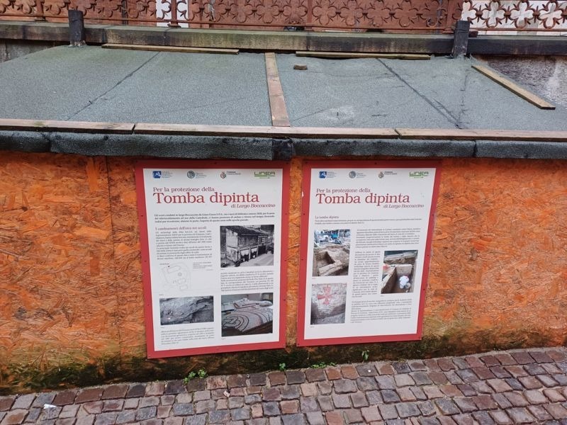 Sulla "casupola" c'erano le foto dello scavo e della tomba con due schede di storia ma nessuno l'ha più vista.