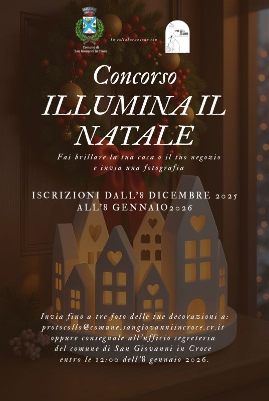 Il Comune di San Giovanni in Croce, in collaborazione con Pro Loco La Dama, invita cittadini, famiglie e commercianti a diventare protagonisti del periodo più magico dell’anno grazie al concorso “Illumina il Natale”, pensato per rendere il paese ancora più suggestivo durante le festività.