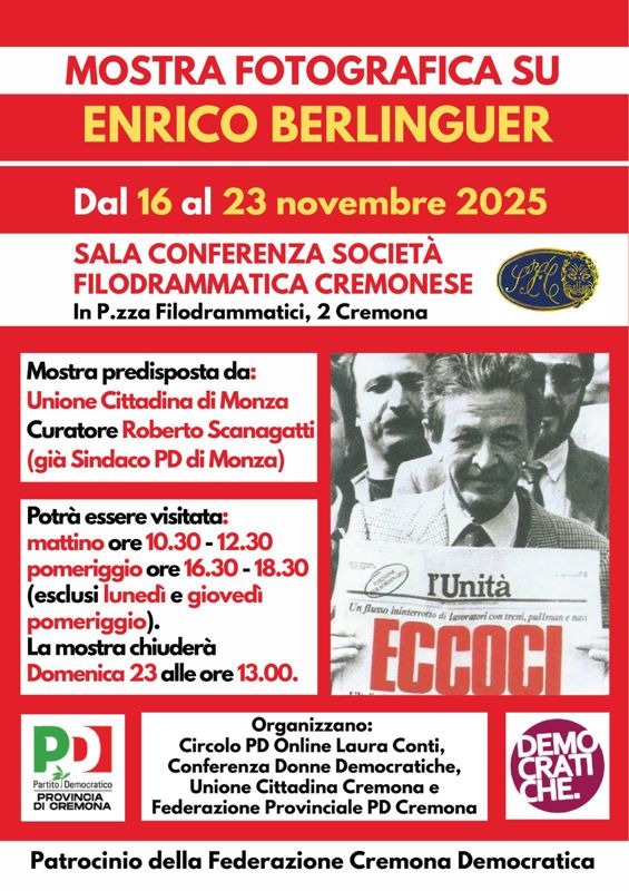 Cremona, dal 16 al 23 novembre 2025, ospita una mostra fotografica dedicata alla vita, alla carriera e al lascito morale del dirigente del Partito Comunista Italiano.